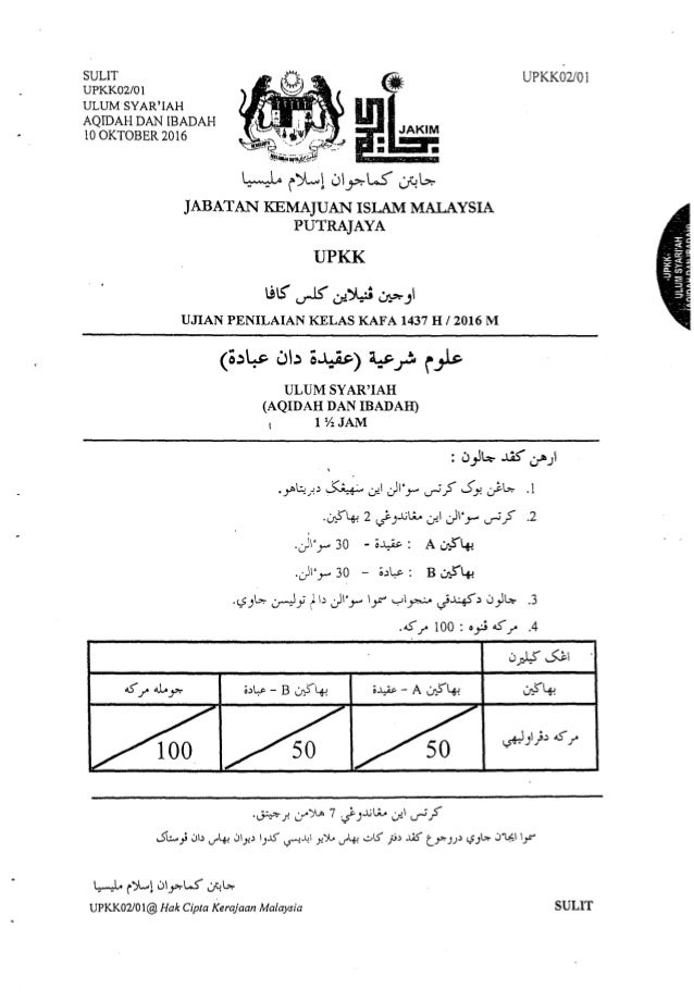 Sulit upkk0201 upkk0201 ulum syariah aqidah dan lbadah 10. Koleksi soalan dua tahun 2018 2019. Soalan sebenar upkk ulum syariah 2016.